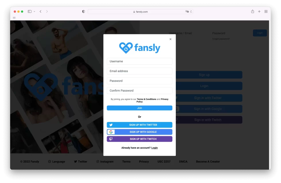 ファンズリー(Fansly)のアカウント作成は、年齢が18歳以上であれば、誰でも無料で新規登録することができます。
