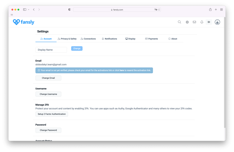 ファンズリー(Fansly)に登録後は、下記のステップに進みます。